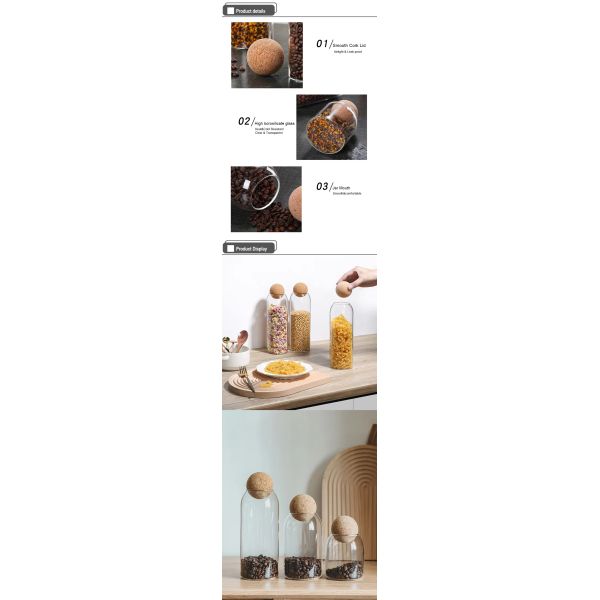High Borosilicate Glass Storage Jar with Cork Lid in 550ml 750ml 1200ml Sizes for Eco-Friendly Food Storage Images |